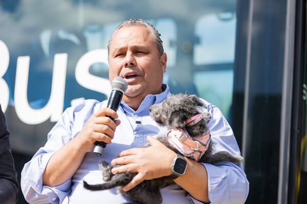 Al interior de una unidad Qrobús, el mandatario queretano enfatizó que con esta acción Querétaro reafirma su liderazgo en instaurar una movilidad moderna e incluyente que simboliza un paso adelante en la evolución del sistema de transporte, con lo cual ahora las familias podrán trasladar a sus mascotas, de manera segura y ordenada.