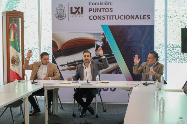 Dentro del orden de día de esta comisión, también fue aprobado, con los votos a favor de los diputados Homero Barrera y Eric Silva y el voto en contra del diputado Enrique Correa, el Dictamen de la Minuta con Proyecto de Decreto por el que se reforman los artículos 115, fracción I, párrafo primero, y 116, fracción II, párrafo segundo, y se adiciona al artículo 134, un párrafo cuarto, recorriéndose los subsecuentes en su orden, de la Constitución Política de los Estados Unidos Mexicanos.