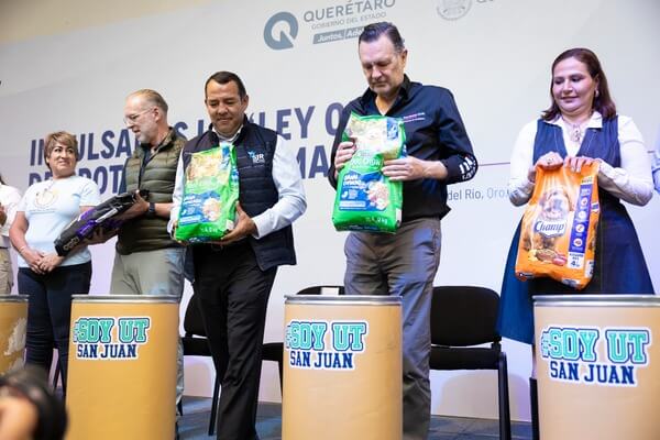Durante el evento -en el que estuvieron presentes la secretaria de Educacin de gobierno del estado, Martha Elena Soto Obregn, y el secretario de Desarrollo Sustentable estatal, Marco Antonio Del Prete Tercero-, el rector de la UTSJR, Fernando Ferrusca Ortiz, al sumarse al fortalecimiento del cuidado y la proteccin animal, entreg a Roberto Cabrera 2.7 toneladas de croquetas para el municipio sanjuanense.