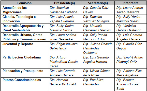 Al dar lectura a dicho acuerdo y presentarlo a la consideración del Pleno, el presidente de la Jucopo expresó que la reconfiguración de comisiones atiende a criterios objetivos de funcionalidad, experiencia parlamentaria, carga de trabajo, especialización temática, sin menoscabo de derechos y prerrogativas de las diputadas y diputados. Dicho acuerdo fue aprobado, quedando de esta manera las siguientes comisiones legislativas:
