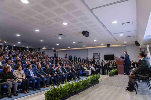Desde el auditorio Nelson Mandela del Centro Especializado en Formación e Investigación Penitenciaria de Querétaro, donde tuvo lugar la ceremonia, el comisionado Estatal del Sistema Penitenciario, Gustavo López Acosta, enfatizó que Querétaro es el único estado, además de la Federación, que cuenta con una formación especializada para el personal técnico, con una carga horaria de 490 horas, es decir, para trabajar en esta institución, el personal requiere especializarse en la atención a personas privadas de la libertad en el modelo Querétaro, liderado por el Gobernador y que hoy es referencia nacional e internacional y reconocido por organismos de la sociedad civil organizada.