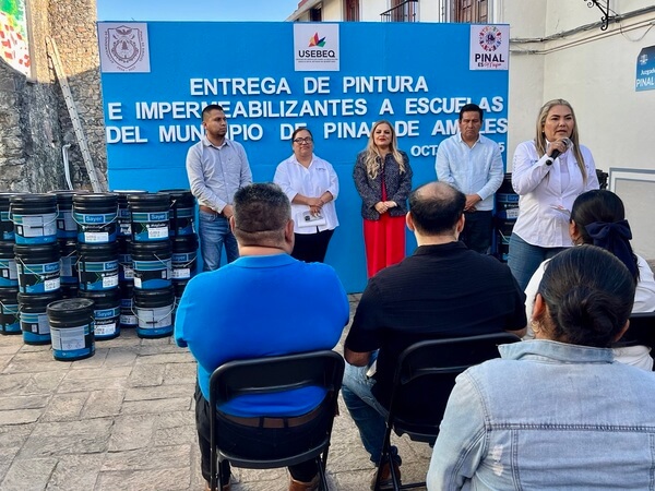 Se entregaron 509 cubetas de pintura, 139 cubetas de impermeabilizante y 60 luminarias a 83 planteles de los cuatro municipios serranos, materiales que serán utilizados para la recuperación, mantenimiento y mejoramiento de los planteles escolares, con el fin de elevar la calidad de los espacios educativos y fortalecer el sentido de pertenencia en las comunidades.