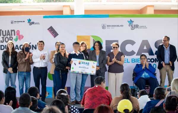 Con el objetivo de fortalecer la educacin y la economa de las familias sanjuanenses, el Gobierno Municipal de San Juan del Ro, presidido por el alcalde Roberto Cabrera Valencia, entreg los apoyos del Programa ?Becas del Bien Comn 2025? a 120 beneficiarias y beneficiarios de educacin especial que realizan sus estudios en el Centro de Atencin Mltiple (CAM) ?La Rosa Azul? y ?ngel Riviere y Gmez?.