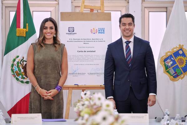 El presidente municipal de Querétaro, Felifer Macías, y la alcaldesa de Cuauhtémoc, Alessandra Rojo de la Vega Piccolo, encabezaron la firma del Acuerdo de Amistad entre ambas demarcaciones, con el propósito de fortalecer la colaboración institucional y promover el intercambio de experiencias exitosas en beneficio de la ciudadanía de las dos entidades.