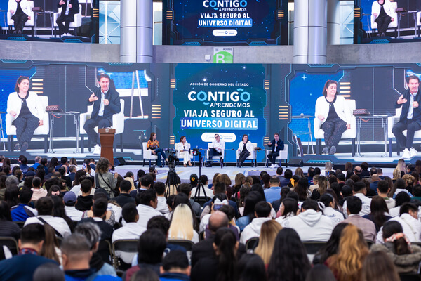 La funcionaria moderó un conversatorio con el Gobernador e invitados especiales como la economista, exsecretaria de Educación Pública y promotora de Civismo Digital, Josefina Vázquez Mota; el presidente de la Fundación Teletón, filántropo y promotor de Derechos Humanos, Fernando Chobi Landeros; y la académica investigadora internacional, especialista en Alfabetización Digital, Redes Sociales Seguras y Prevención del Cyberbullying, Marcela Momberg, para tratar distintos aspectos de las tecnologías, uso de dispositivos y responsabilidad de los padres, madres de familia y docentes.