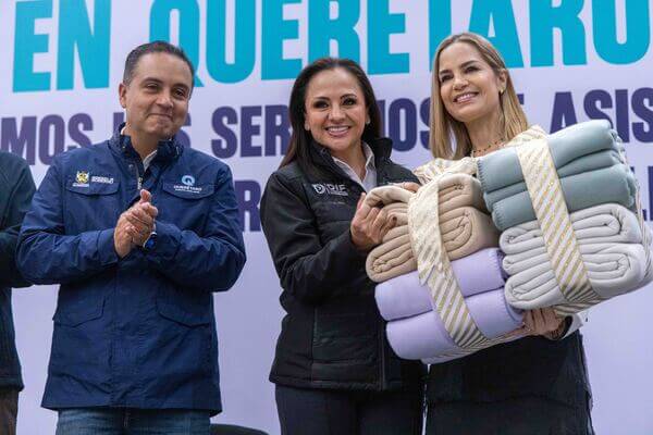 Con el objetivo de proteger del frío a la población más vulnerable de la entidad, la presidenta del Patronato del Sistema Estatal DIF, Car Herrera de Kuri, puso en marcha la Colecta Invernal 2025, en la cual recibió del secretario de Gobierno, Eric Gudiño las primeras cobijas que abrigarán a cientos de familias queretanas.