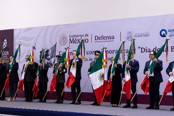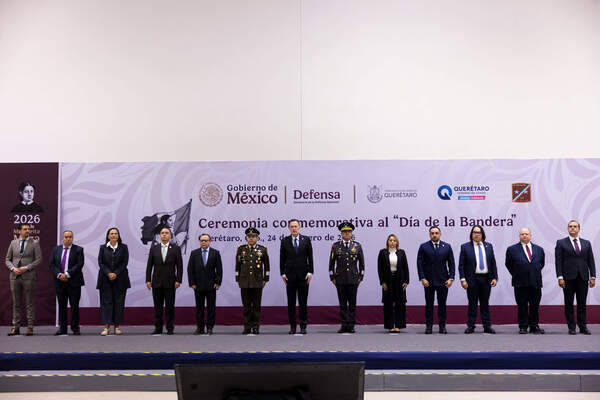 Desde el Querétaro Centro de Congresos, donde se rindieron honores al Lábaro Patrio, el mandatario estatal, en compañía del Gral. de Bgda. de E. M., José Guillermo Lira Hernández, comandante de la XVII Zona Militar y el Gral. de Bgda. de E.M., Alfredo Salgado Vargas, coordinador estatal de la Guardia Nacional, honró el legado de quienes forjaron la nación y a uno de los símbolos considerado emblema de unidad, respeto y soberanía.