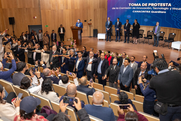 El gobernador Mauricio Kuri encabezó la toma de protesta de la Comisión de Innovación, Tecnología y Vinculación de la Cámara Nacional de la Industria de la Transformación (CANACINTRA) Querétaro, misma que es presidida por José Carlos Arredondo Velázquez. Ahí reconoció la importancia de que la iniciativa privada se sume a este tipo de acciones para mantener el rumbo del estado en desarrollo científico e industrial.