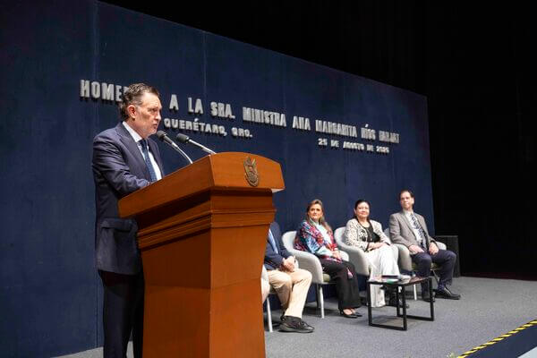 El titular del Poder Ejecutivo estatal, Mauricio Kuri, asistió al homenaje de la ministra, Ana Margarita Ríos Farjat, quien fue reconocida por su sobresaliente trayectoria y aportaciones en el ámbito de la justicia. Con su presencia, el gobernador refrendó el compromiso de su administración con el fortalecimiento institucional y la consolidación del Estado de Derecho.