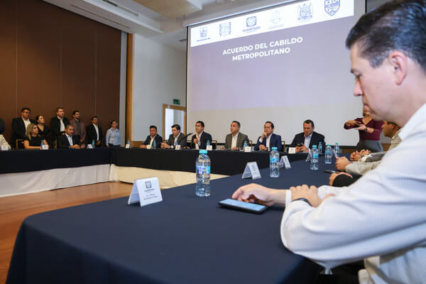El secretario de Gobierno, Eric Gudiño Torres, encabezó la sesión de Cabildo Metropolitano en la que participaron los presidentes municipales de Querétaro, Corregidora, San Juan del Río, El Marqués y Huimilpan con el propósito de atender y dar cumplimiento al Decreto que prohíbe eventos musicales tendientes a la apología del delito y la violencia en el estado e implementar medidas administrativas preventivas que limiten interpretar o reproducir este tipo de música.